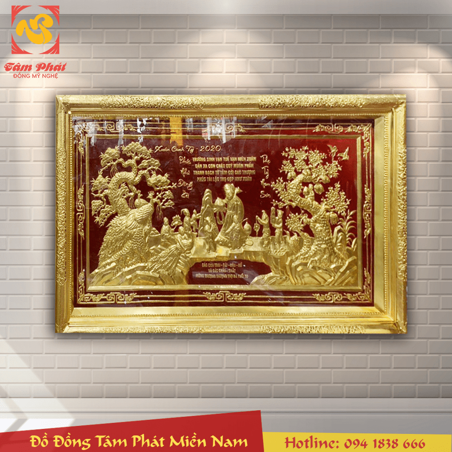 Tranh Vinh Quy Bái Tổ bằng đồng mạ vàng 24K