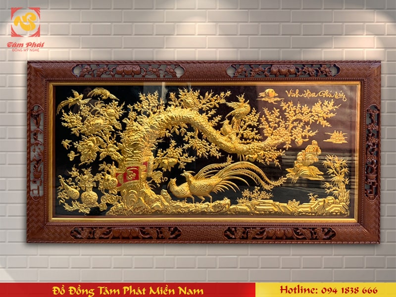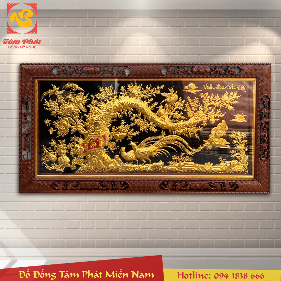 Tranh Vinh Hoa Phú Quý bằng đồng mạ vàng 24K