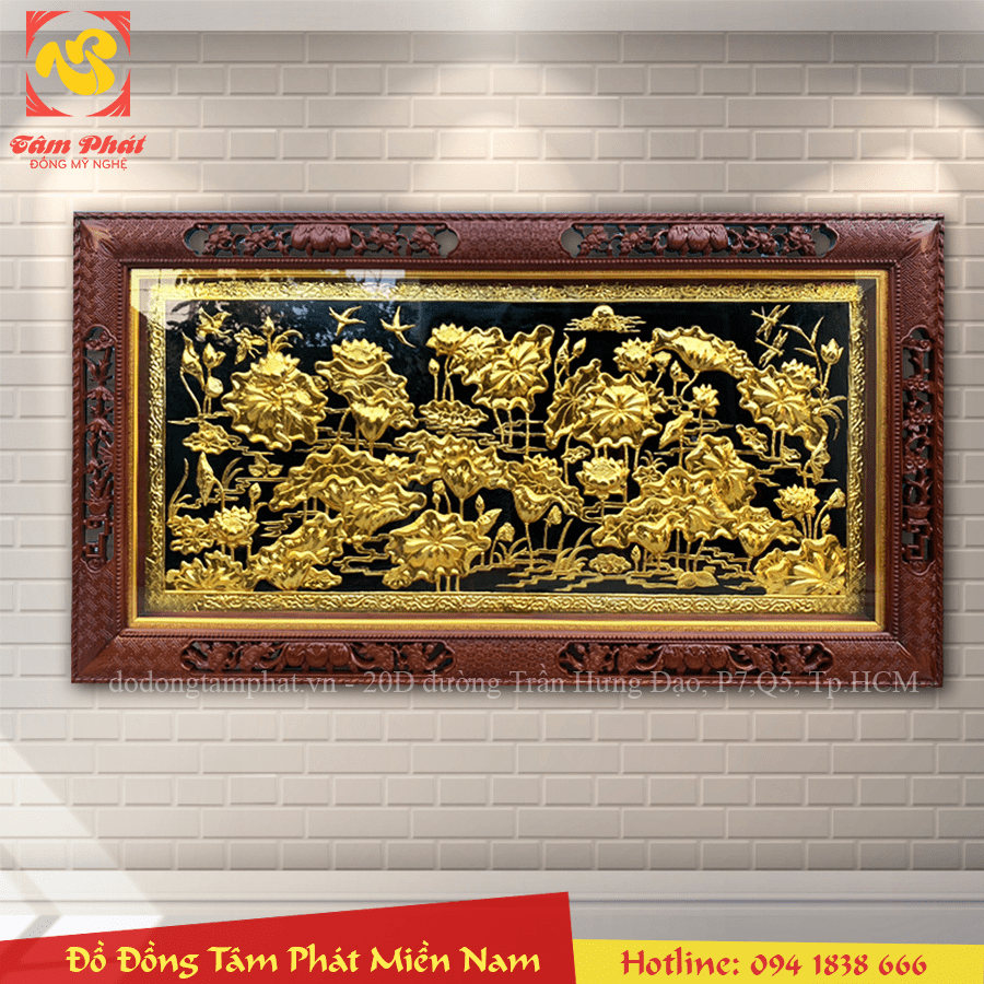 Tranh Hoa Sen bằng đồng mạ vàng 24K