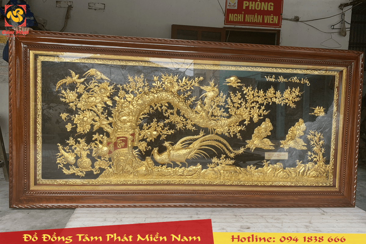 TRANH VINH HOA PHÚ QUÝ là một trong những bức tranh bằng đồng được chế tác đẹp nhất, với bố cục hoàn hảo, ý nghĩa sâu sắc, được các nghệ nhân chạm thúc vô cùng tinh xảo, đường nét điêu luyện bắt mắt.