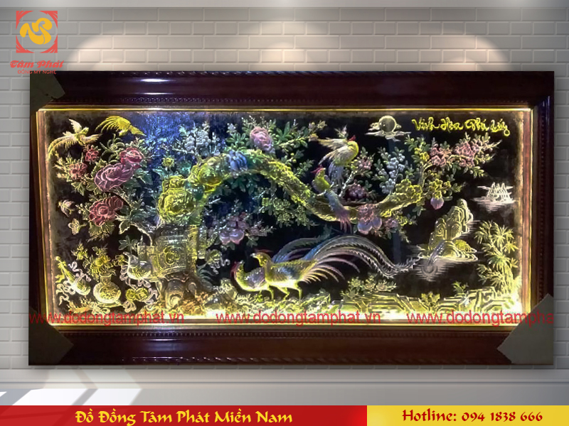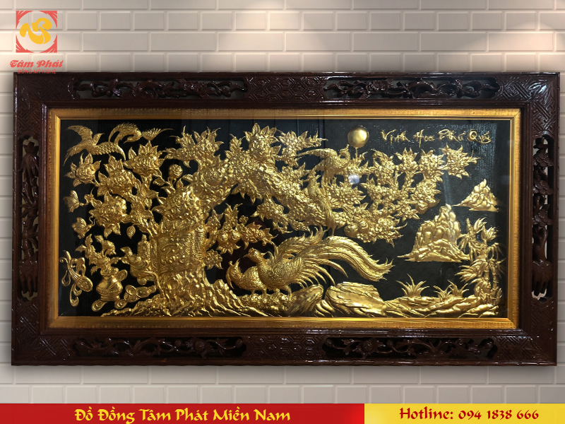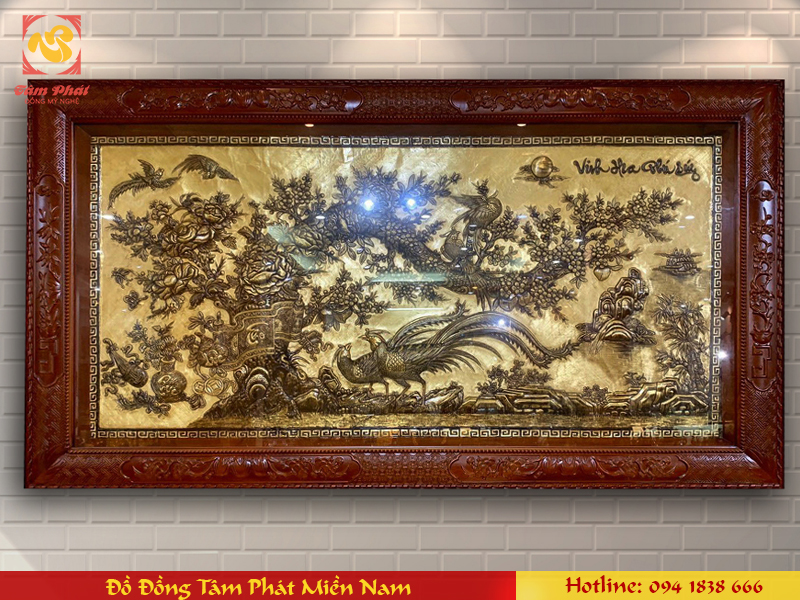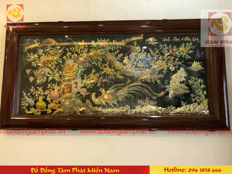 Tranh đồng Vinh hoa phú quý với nhiều kích thước khác nhau là bức tranh nội thất phong thủy đẹp, giàu ý nghĩa thường được sử dụng treo trưng bày trong phòng khách, phòng làm việc với ý nghĩa sâu sắc.