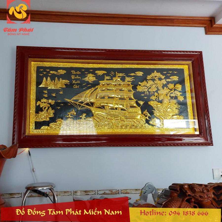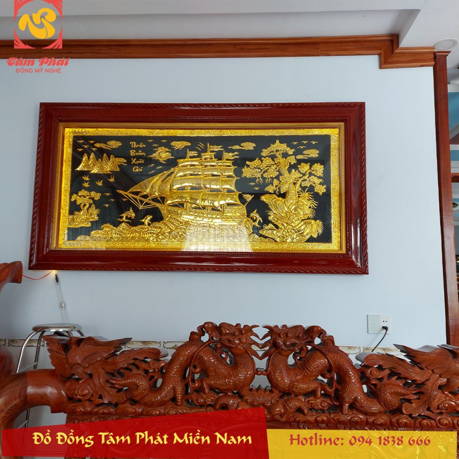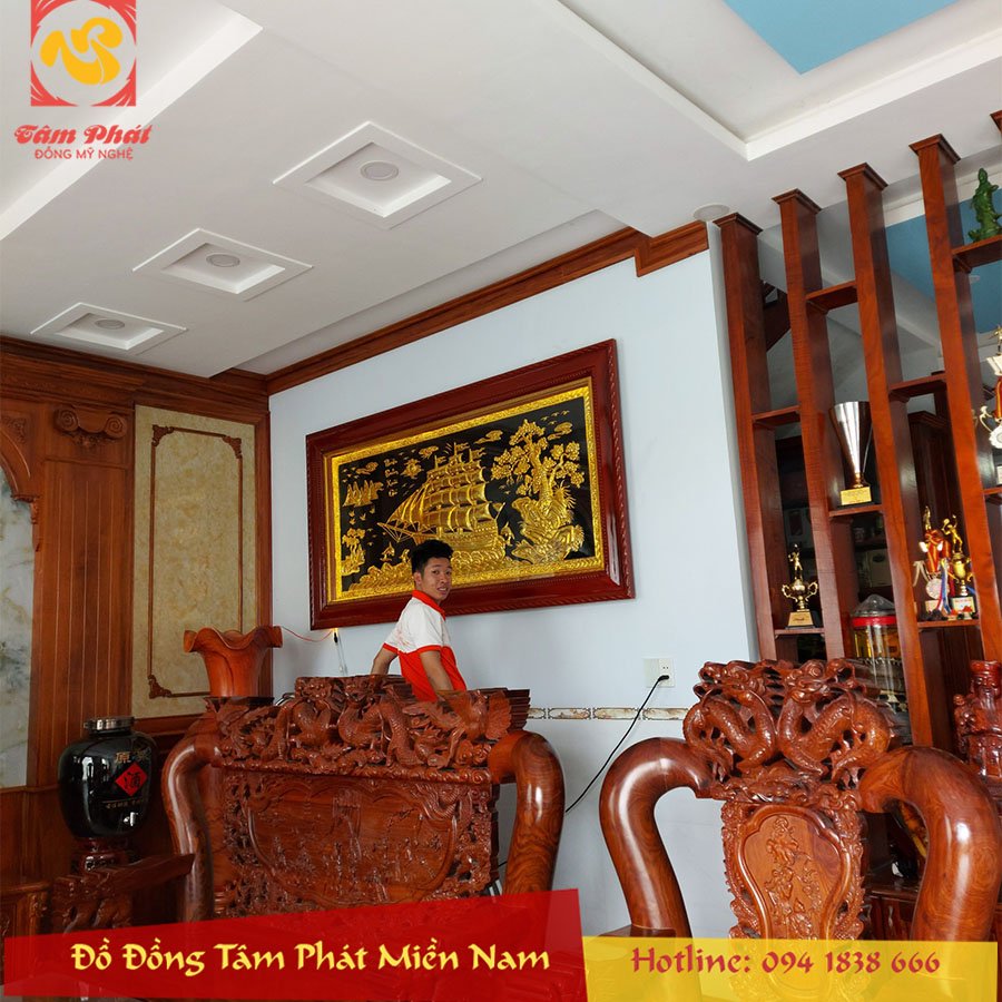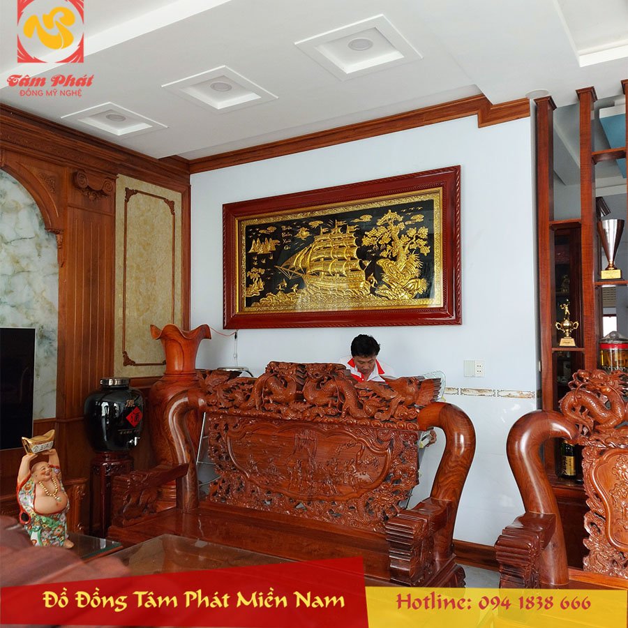 Vận chuyển, lắp đặt hoàn thiện Tranh Thuận Buồm Xuôi Gió 2.3X1.2m, mạ vàng 24K- Gia đình Anh Khải ở Long Thành, Đồng Nai.