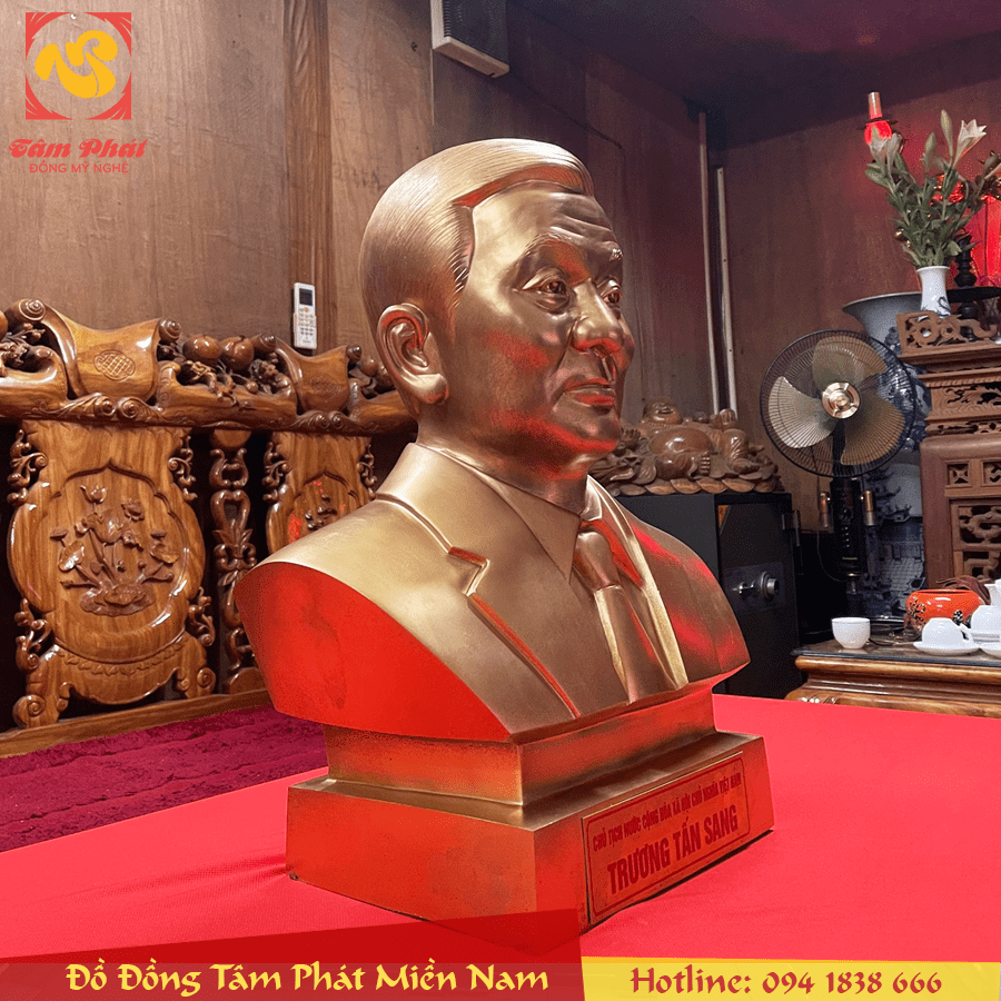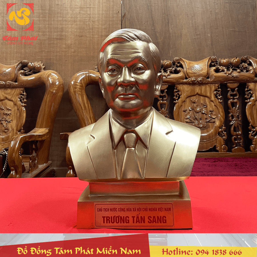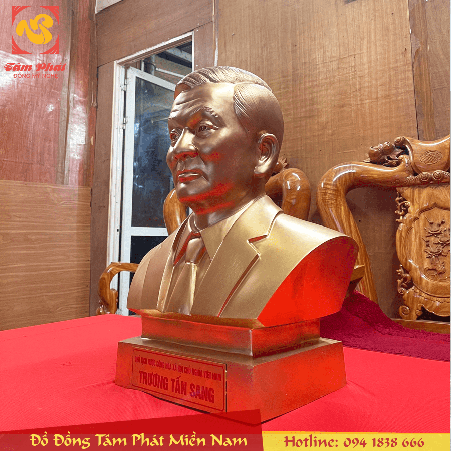 Tượng Chân Dung Chủ Tịch Trương Tấn Sang bằng đồng đỏ nguyên chất là bức tượng đẹp tôn nghiêm, tinh xảo, giàu ý nghĩa rất được ưa chuộng, thường được trưng bày tại cơ quan, phòng khách, phòng làm việc,... trong các hội nghị tại các công đoàn, ban ngành Nhà nước, các khu vực tưởng niệm. Bảo hành chất lượng trọn đời. Miễn phí vận chuyển toàn quốc.