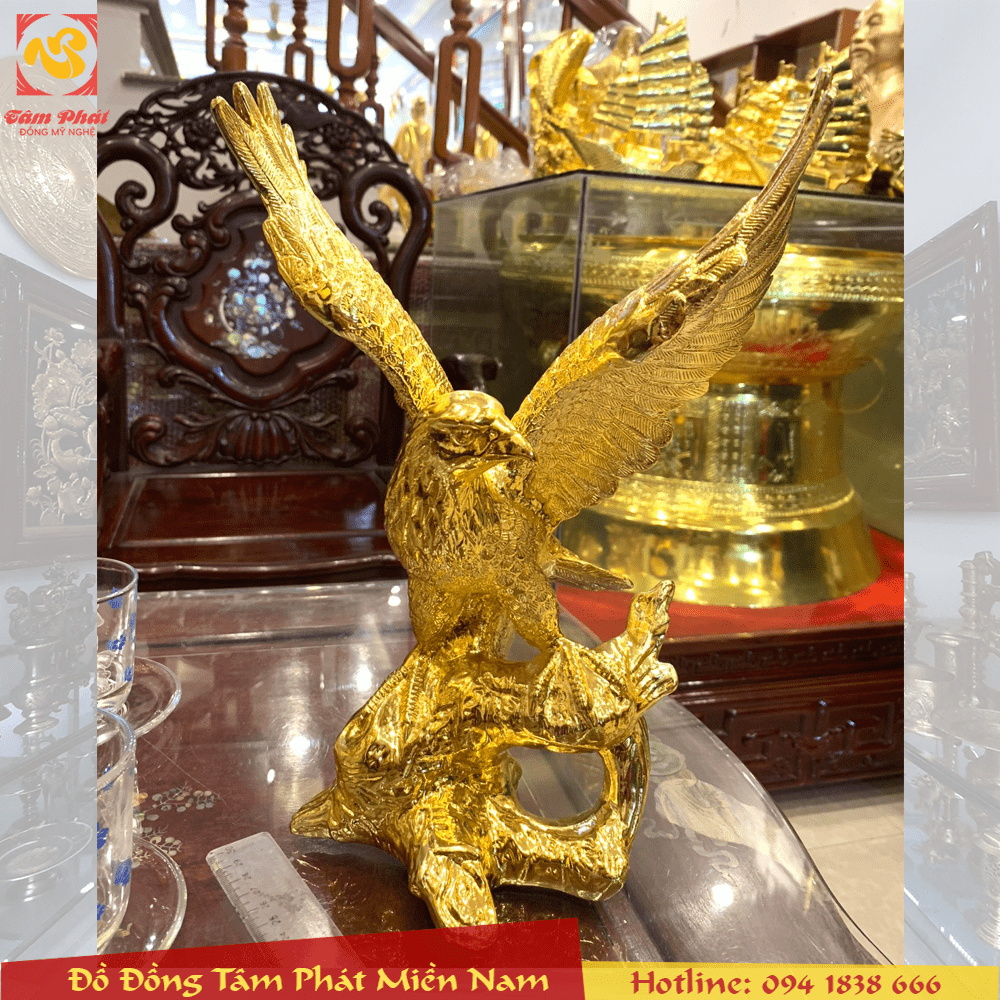 Tượng đại bàng phong thủy độc đáo bằng đồng mạ vàng là tác phẩm nội thất tinh xảo với thiết kế đầy thẩm mỹ rất được ưa chuộng. Tác ẩm dược chế tác bởi Cơ sở Đồ Đồng Tâm Phát. Bảo hành trọn đời. Miễn phí vận chuyển toàn quốc.