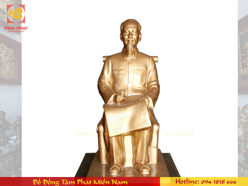 Tượng đồng Bác Hồ ngồi đọc báo thếp vàng là bức tượng đẹp tôn nghiêm, tinh xảo, giàu ý nghĩa về Bác Hồ rất được ưa chuộng.