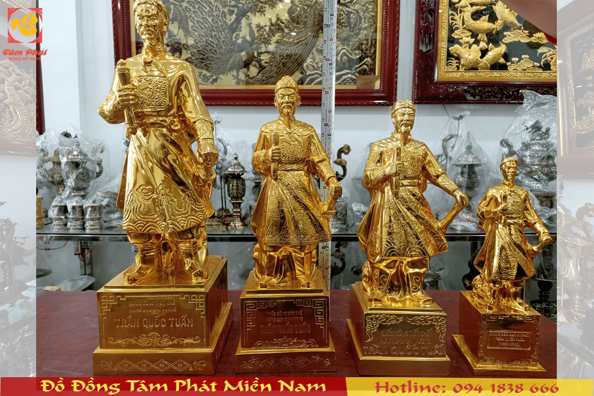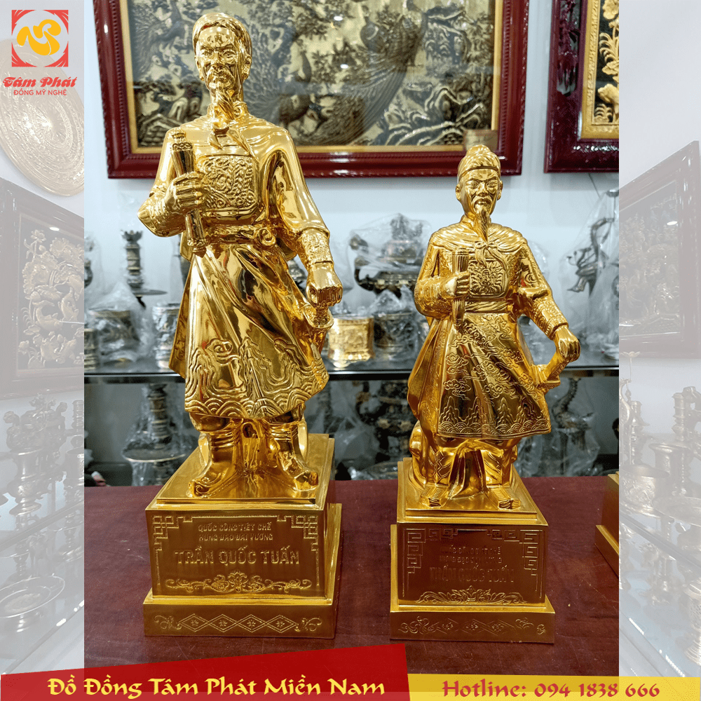 Tượng Đức Thánh Trần Hưng Đạo bằng đồng mạ vàng 24k là bức tượng danh nhân cao cấp, tinh xảo, giàu ý nghĩa được ưa chuộng dùng để trưng bày phòng khách, phòng làm việc trấn trạch, tránh tà khí, mang lại nguồn năng lượng tốt cho không gian của gia chủ. Bảo hành chất lượng trọn đời. Miễn phí vận chuyển toàn quốc.