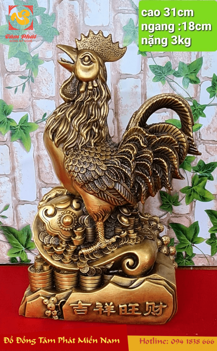 Tượng gà trống cưỡi gậy Như Ý là linh vật phong thủy tinh xảo, giàu ý nghĩa tài lộc sâu sắc. Hãy đến với chúng tôi ngay hôm nay để sở hữu được sản phẩm chất lượng với nhiều ưu đãi hấp dẫn nhất!