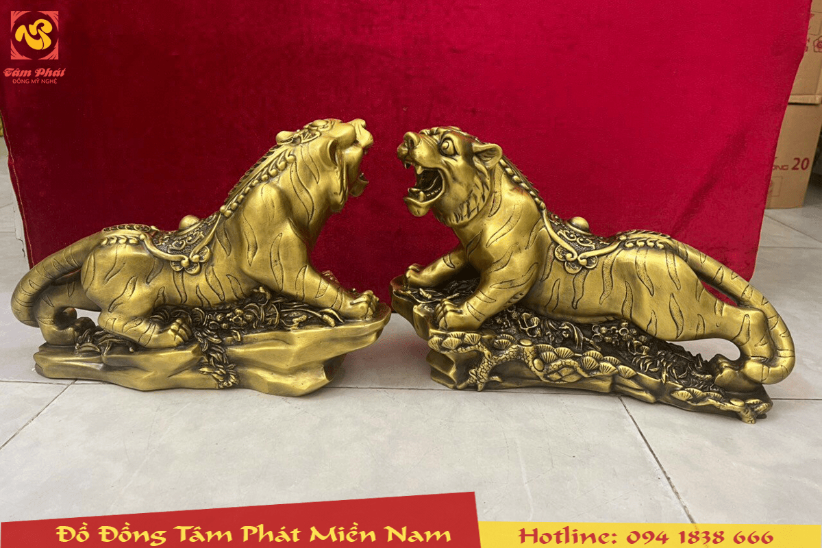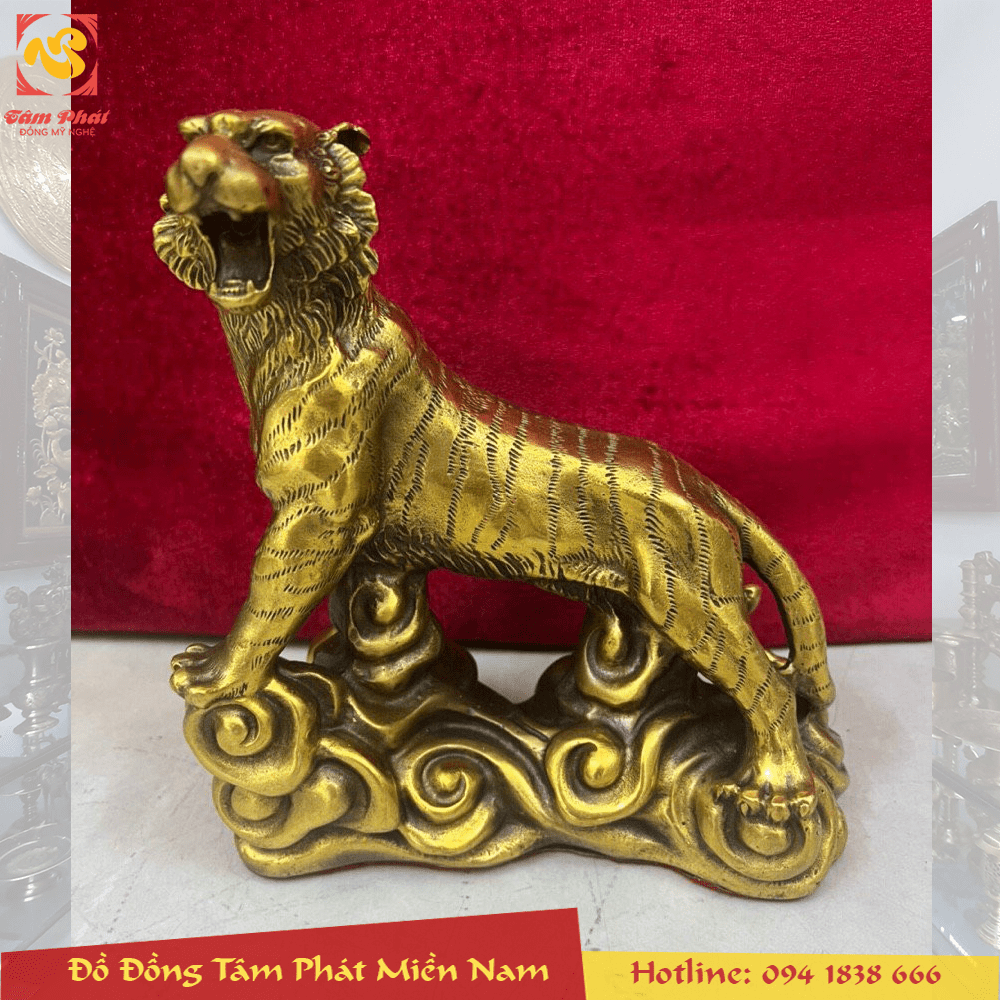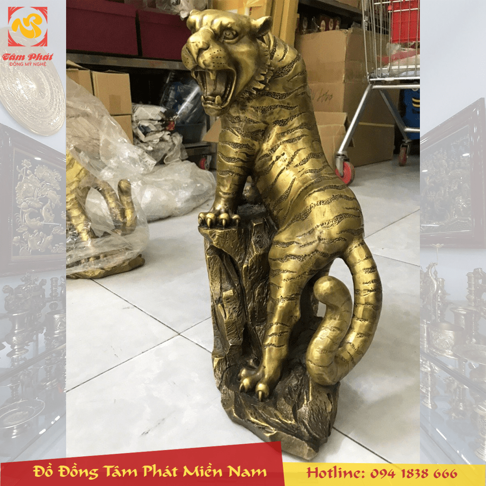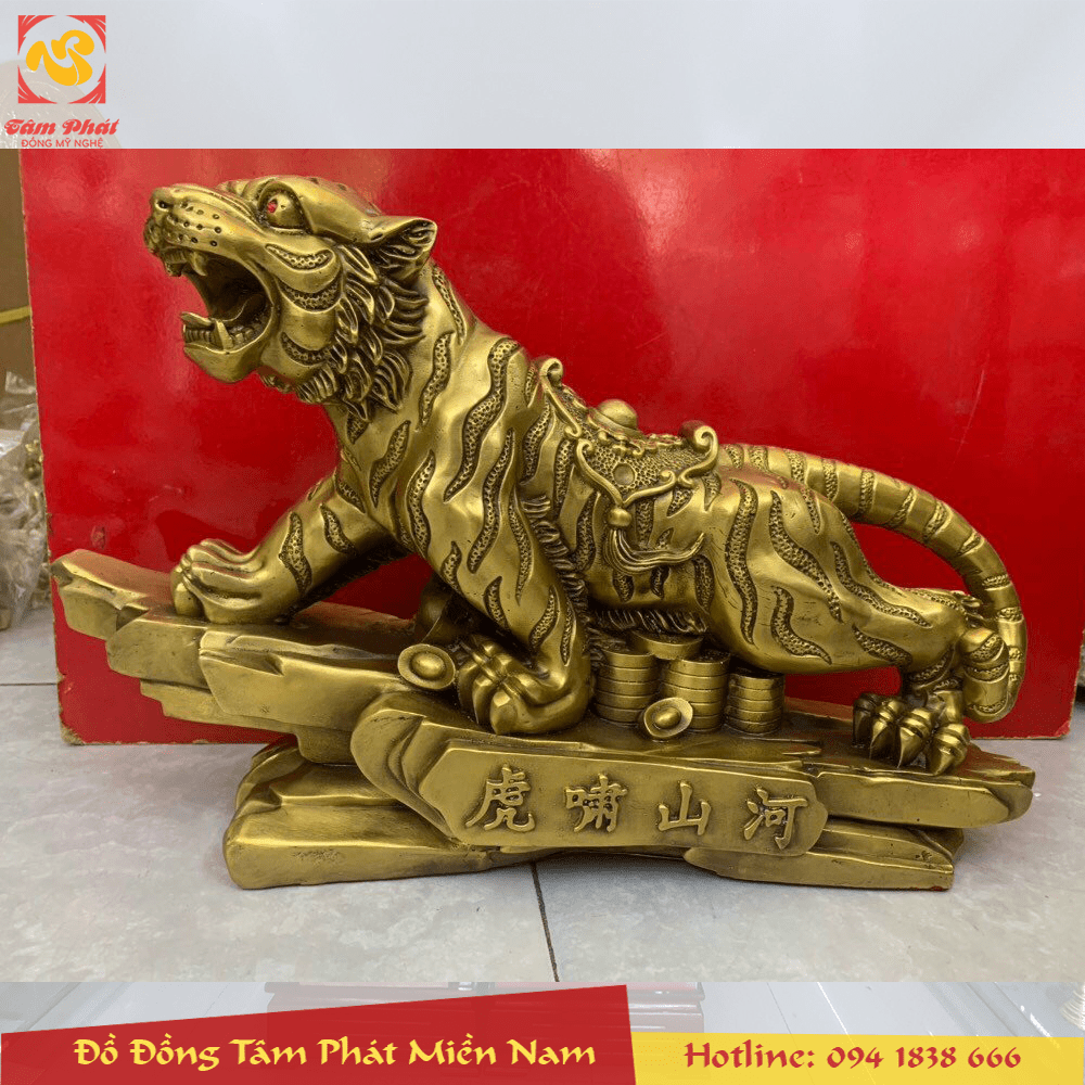 Tượng hổ bằng đồng vàng oai phong lẫm liệt đẹp tinh xảo là mẫu linh vật phong thủy giàu ý nghĩa, được nhiều người ưa dùng. Đứng trên đỉnh núi oai phong uy nghi, quyền lực, thích hợp để dành tặng cho Sếp, người bề trên, trong các dịp trọng đại như sinh nhật, tân gia hay dùng làm quà tặng Tết...