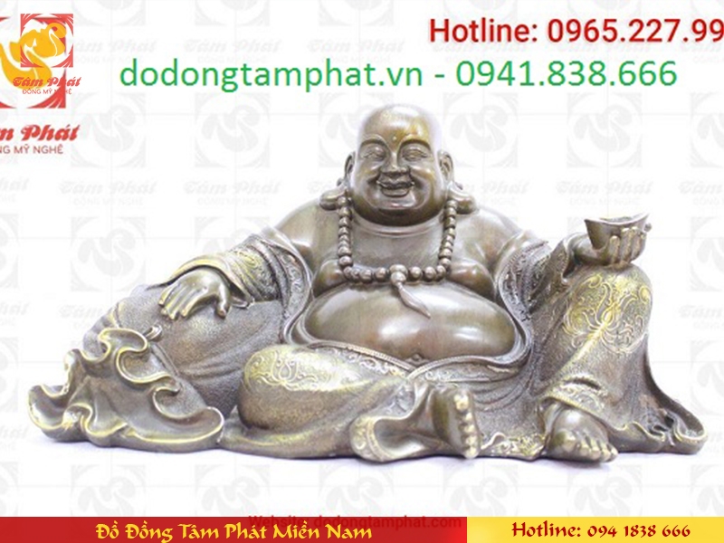 Mục đích sử dụng: Tượng Phật Di Lặc bằng đồng hun xanh dài 40cm cao 20cm là bức tượng Phật cao cấp, linh thiêng, giàu ý nghĩa rất được ưa chuộng. Tác phẩm được Tâm Phát chế tạo kì công từ đồng nguyên chất với màu sắc, hoa văn tinh tế cùng những nét chạm đúc công phu, sâu sắc giá trị nhân văn. Bức tượng được được sử dụng trưng bày trong cơ quan, phòng khách nhằm mang lại may mắn cho gia chủ…