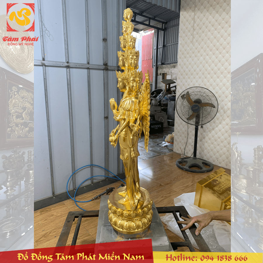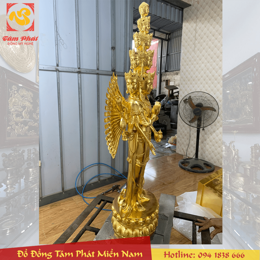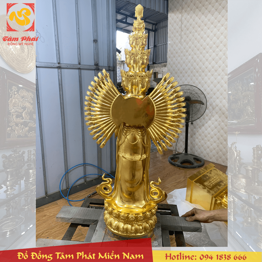 Tên sản phẩm: Tượng Phật Thiên Thủ Thiên Nhãn Thập Nhất Diện bằng đồng dát vàng 9999