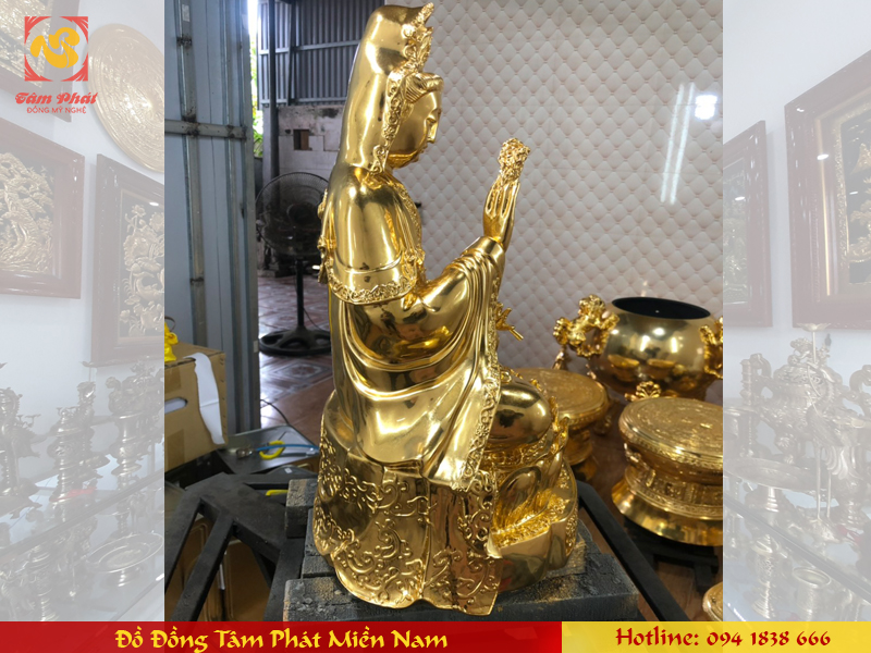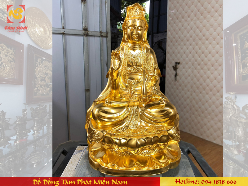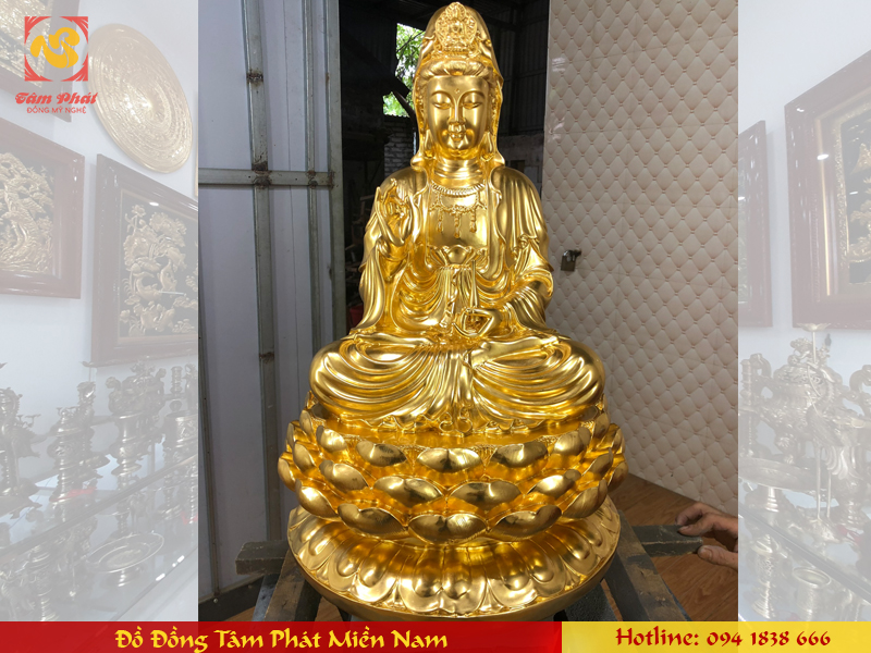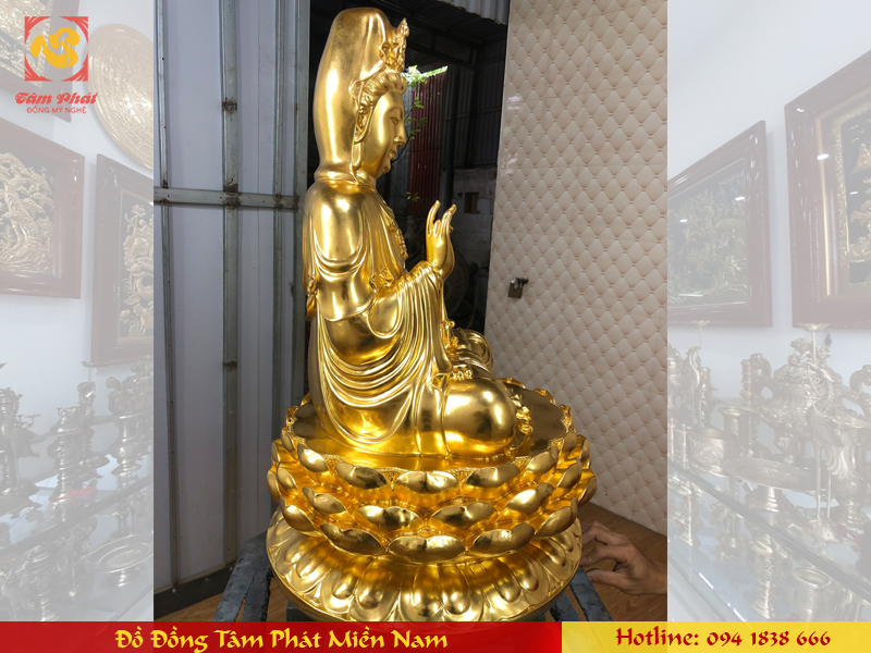 Mục đích sử dụng: Tượng Quan Thế Âm bằng đồng dát vàng quỳ 9999 là bức tượng Phật linh thiêng, đẹp tinh xảo, giàu ý nghĩa rất được ưa chuộng. Tác phẩm được Tâm Phát chế tạo kì công từ đồng nguyên chất với màu sắc, hoa văn tinh tế cùng những nét chạm đúc công phu, sâu sắc giá trị nhân văn. Bức tượng thường được nhân dân thờ cúng trong các chùa, điện thờ, phòng thờ Phật... với lòng thành kính sâu sắc.